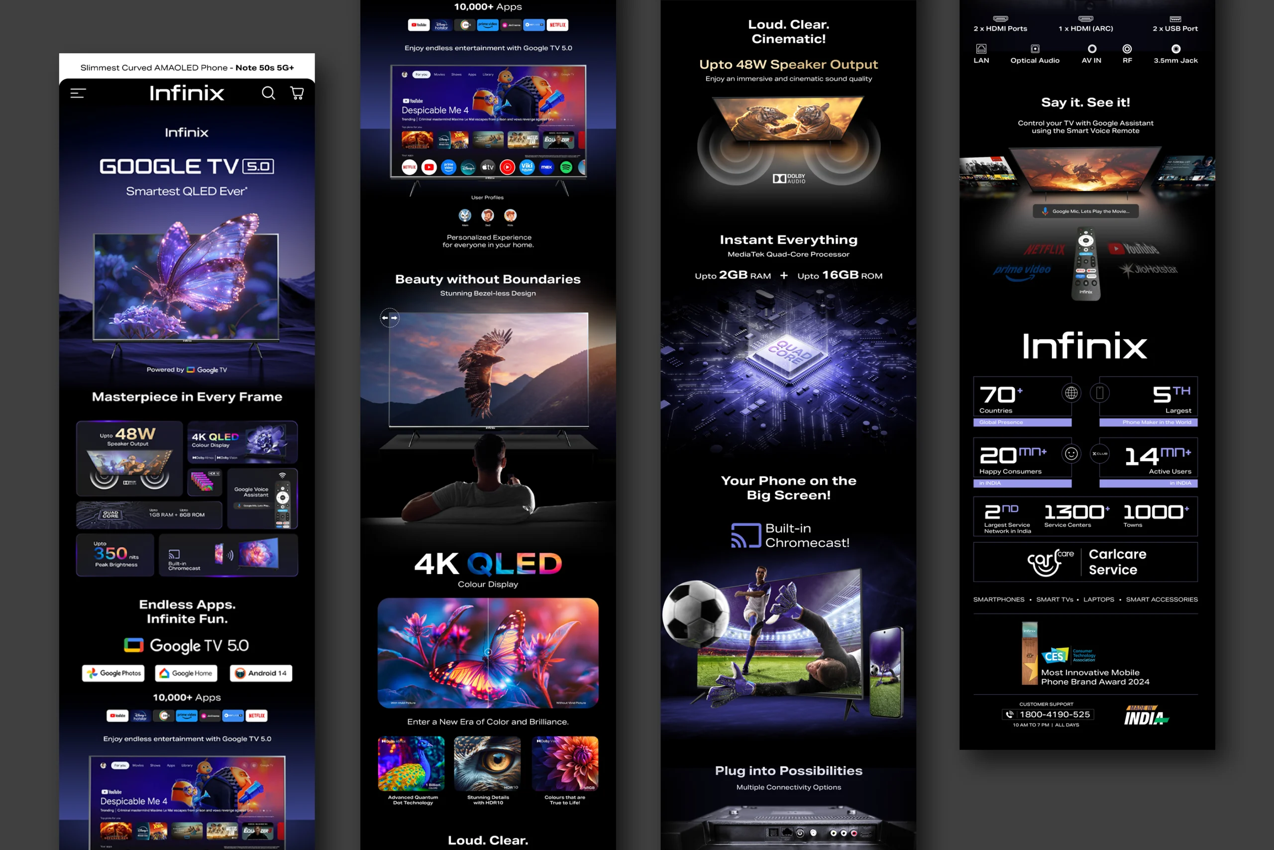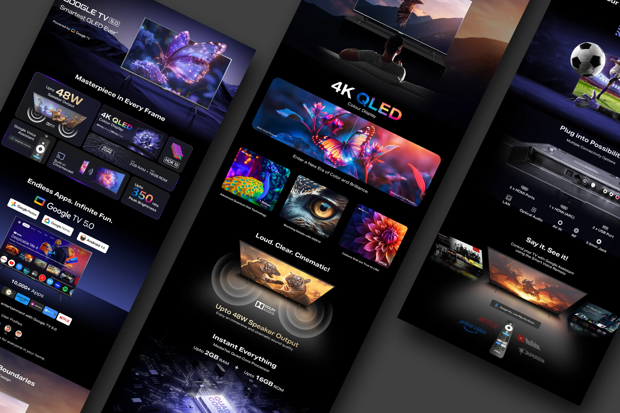 One challenge was balancing visual richness (images, TV visuals, content thumbnails) with page load times and simplicity so that users don’t feel overwhelmed. Ensuring content hierarchy so features, specs, and imagery are easy to consume without clutter was key. Another challenge was making sure that the design remained responsive, looking great on large screens as well as tablets or smaller devices, given that smart TV product pages often get viewed across multiple platforms.